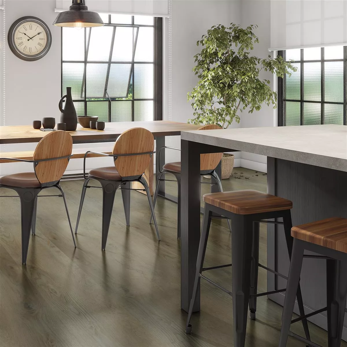 Der Vinylboden Klicksystem Hollywood in warmem Braun verleiht Ihren Räumen eine gemütliche und zeitlos elegante Ausstrahlung. Dieser hochwertige Bodenbelag kombiniert eine ansprechende Holzoptik mit modernem Komfort, um eine einladende Atmosphäre zu schaffen.