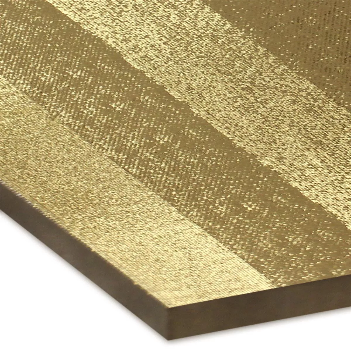 Die Dekor Wandfliese Melody in Gold Struktur 25 x 75 cm ist eine Keramikfliese und erobert das private Wohnen mehr und mehr aufgrund ihrer modernen Optik sowie ihrer optimalen technischen Eigenschaften. Angeboten wird sie in einer Größe von 25 x 75 cm sowie einer Stärke von 9,5 mm. Diese Fliesenserie findet man zudem in den Farben Weiß, Silber und Gold. Sie bietet eine glänzende Oberfläche, was die Badfliesen besonders edel aussehend lässt. Hergestellt wird sie rektifiziert, d.h. mit exakten 90 Grad Winkeln, so dass sie mit nur einer schmalen Fugenbreite verlegt werden kann.