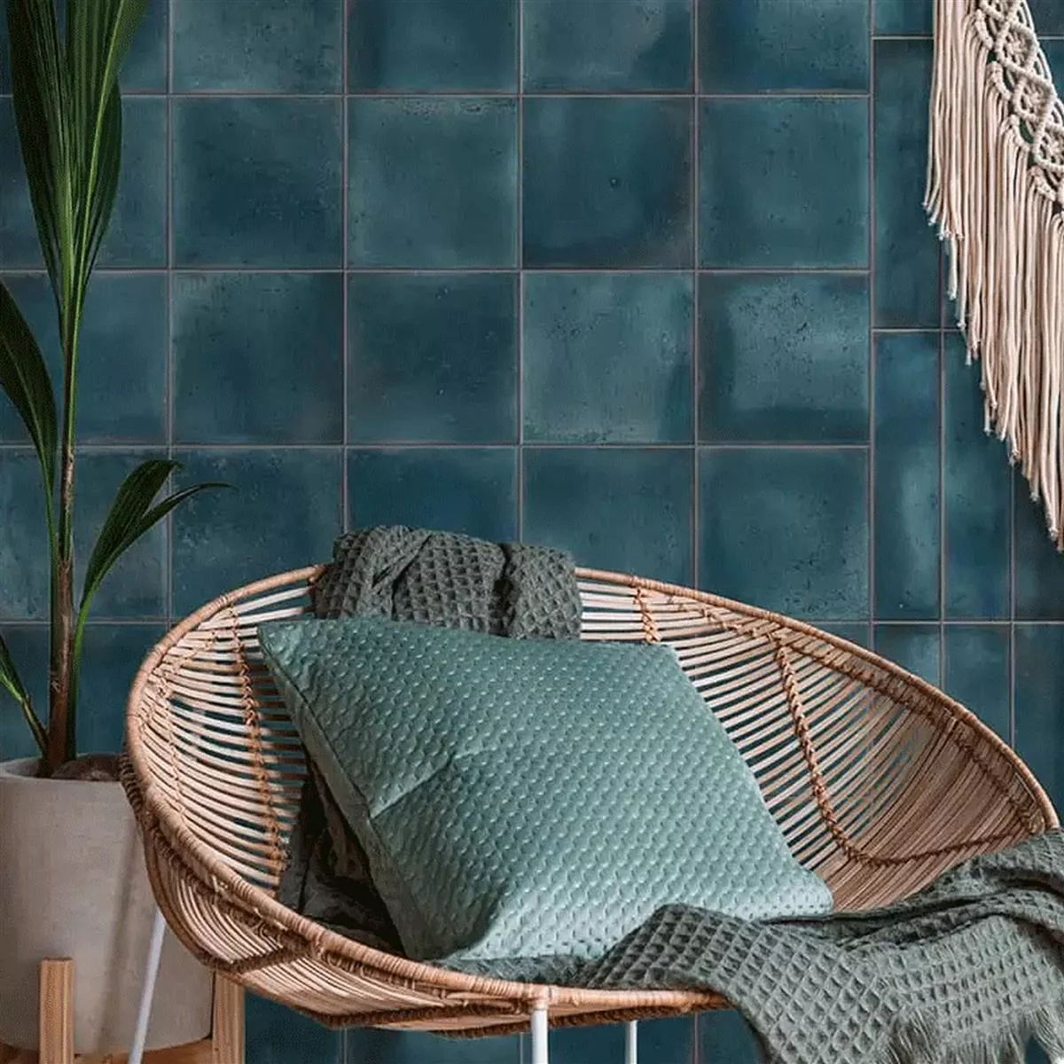 Wandfliesen Kiowa Glänzend Gewellt Blau 15x15cm