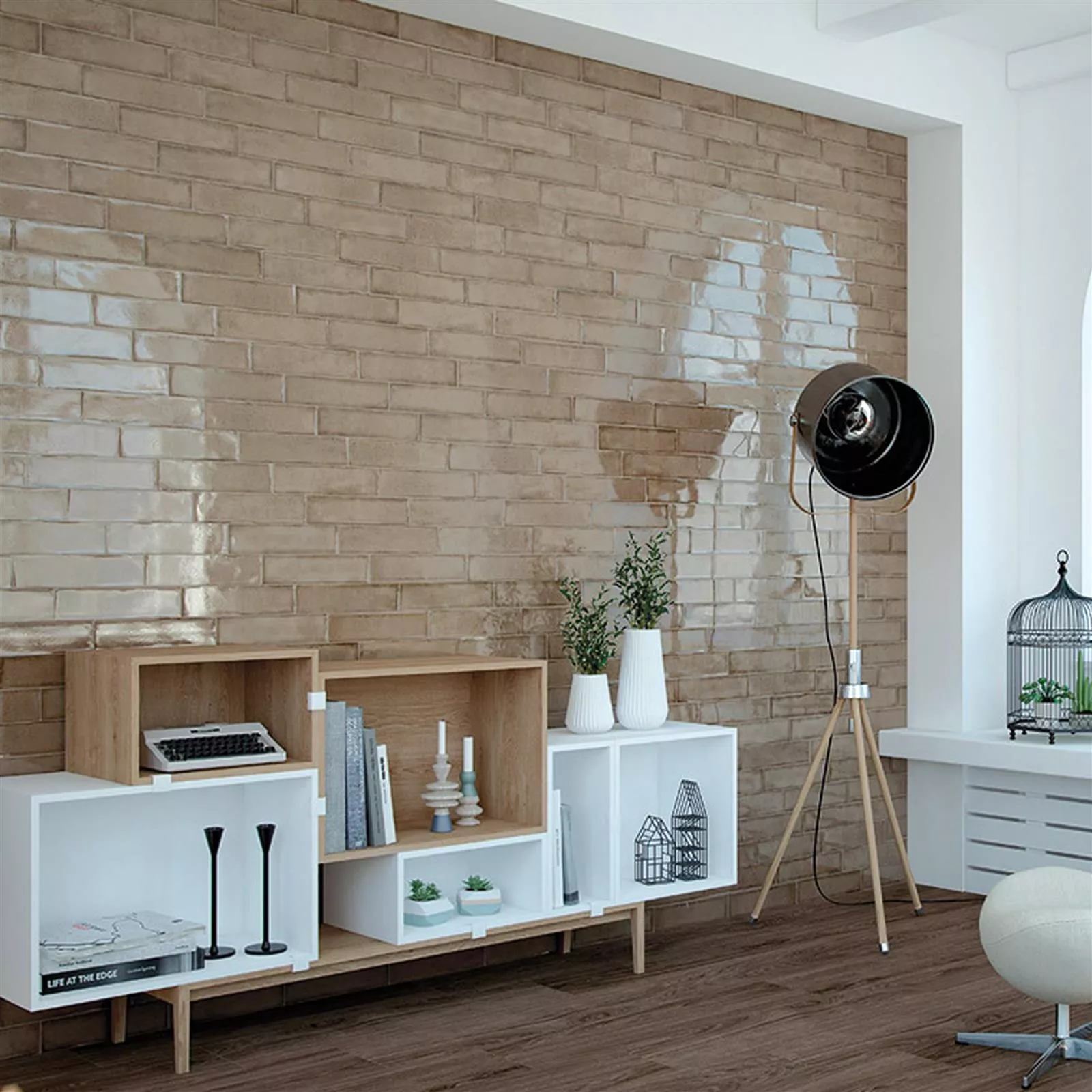 Wandfliesen Maestro Gewellt Glänzend Hellbraun 7,5x30cm