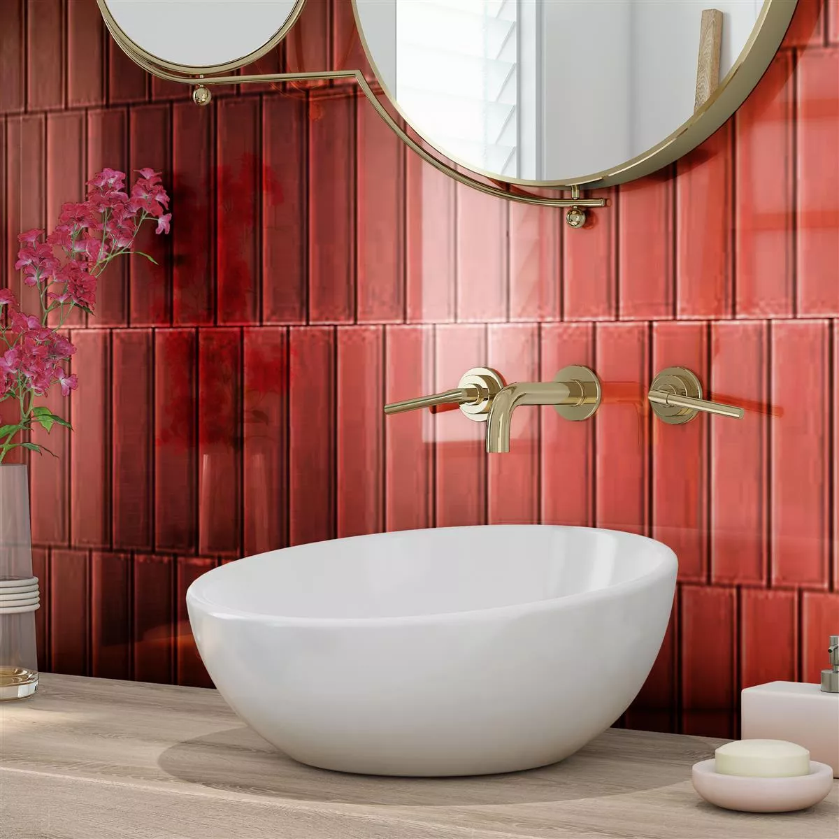 Wandfliesen Pascal Glänzend Innen Facette Rot 7,5x30cm