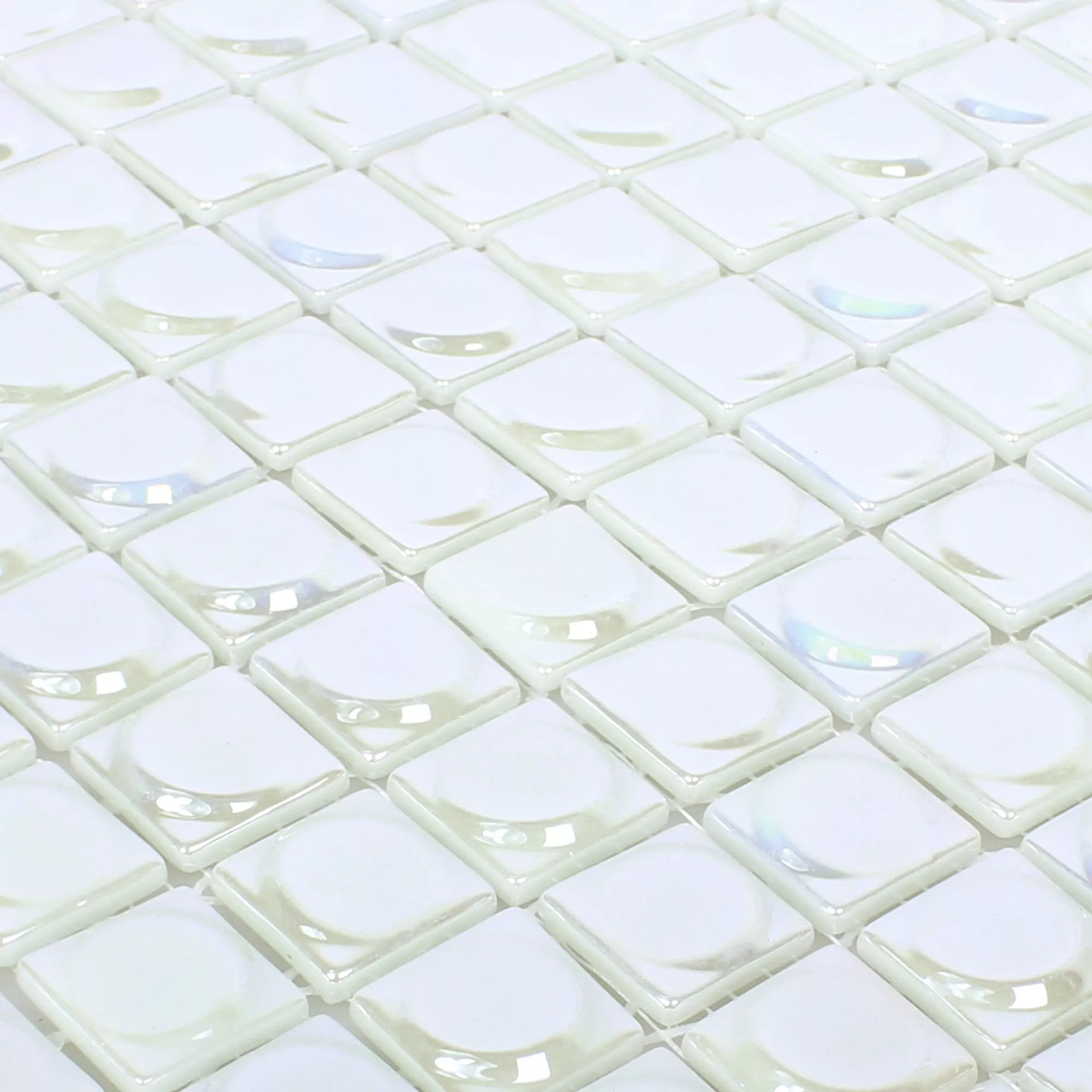 Glasmosaik Fliesen Accra Weiß 3D Rund